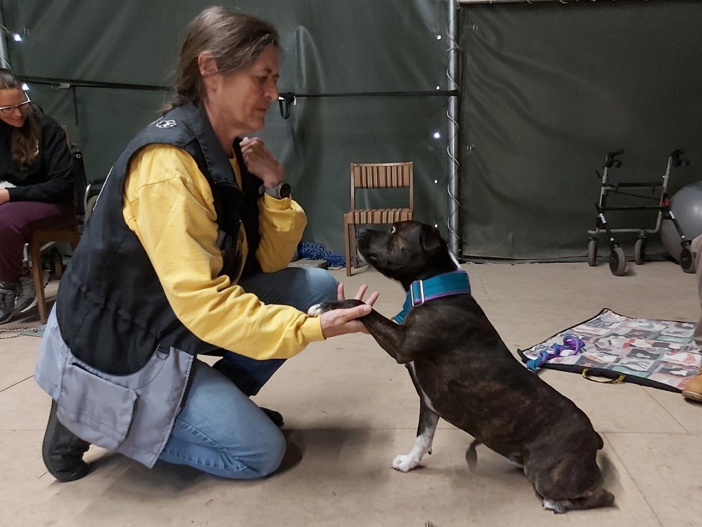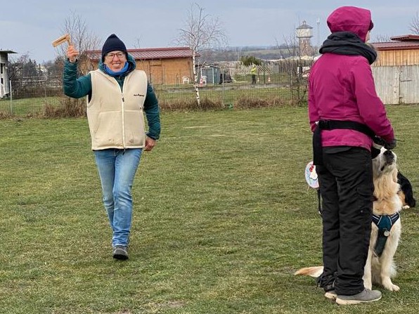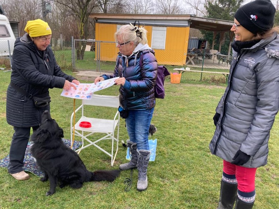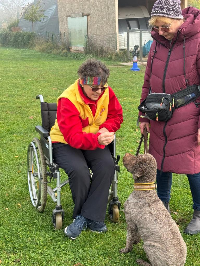 Training zu jeder Jahreszeit: Nach den Prüfungen ist vor der Prüfung – wir trainieren zu jeder Jahreszeit! Geduldig warten, die Pfoten geschickt einsetzen und Personen im Rollstuhl gesittet und ruhig begrüßen wurde diesmal geübt!