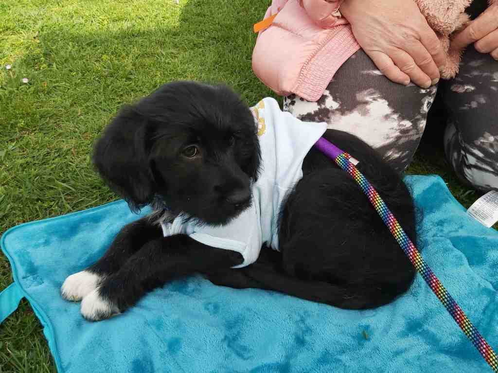 Soooooo wichtig für einen Therapiebegleithund: auf der Decke warten können – egal wer oder was rundherum ist – in der Ruhe liegt die Kraft 💪🏼😊